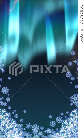 オーロラの夜空背景 クリスマス向け 雪の結晶フレーム 4k比率 縦のイラスト素材